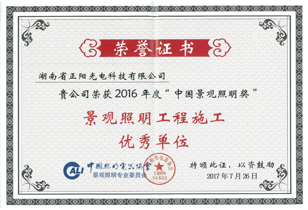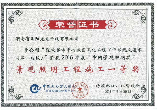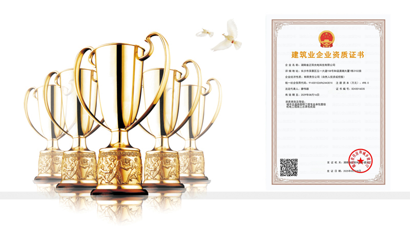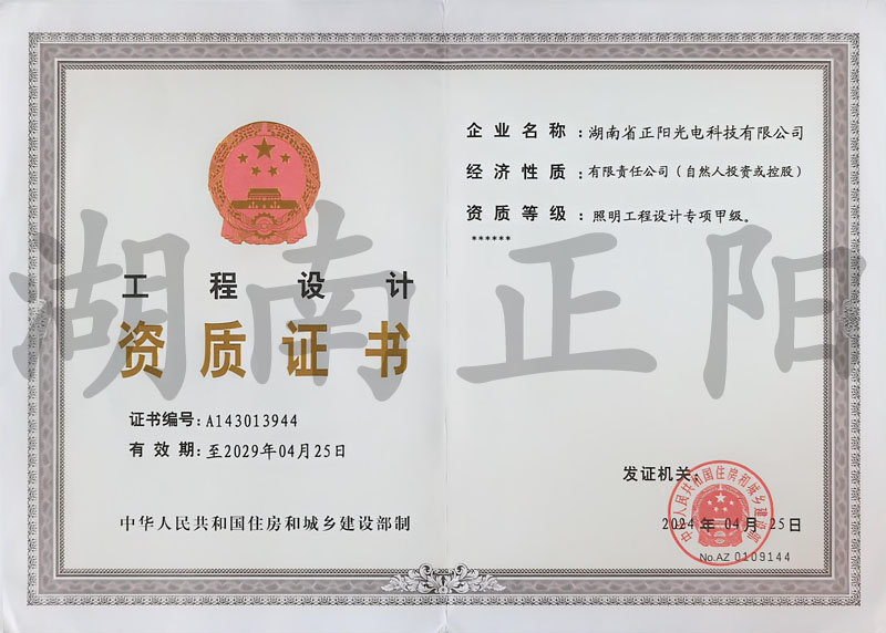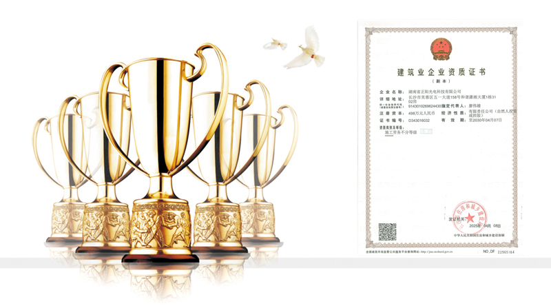 湖南省正陽光電科技有限公司是一家從事亮化工程及大型燈光藝術的設計、制作、安裝和維護于一體的專業(yè)化公司。公司資質(zhì)齊全、管理嚴謹、技術先進、實力雄厚,取得了城市及道路照明工程專業(yè)承包壹級資質(zhì)、照明工程設計專項甲級資質(zhì)、機電工程施工總承包貳級資質(zhì)、施工勞務等資質(zhì)、國家高新技術企業(yè)、國家“重質(zhì)量·守誠信”示范企業(yè)。